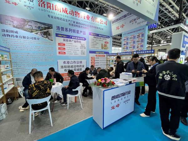 展會現(xiàn)場:洛陽朗威動物藥業(yè)有限公司帶來的明星產(chǎn)品吸引了眾多同行業(yè)人士與觀眾參觀。